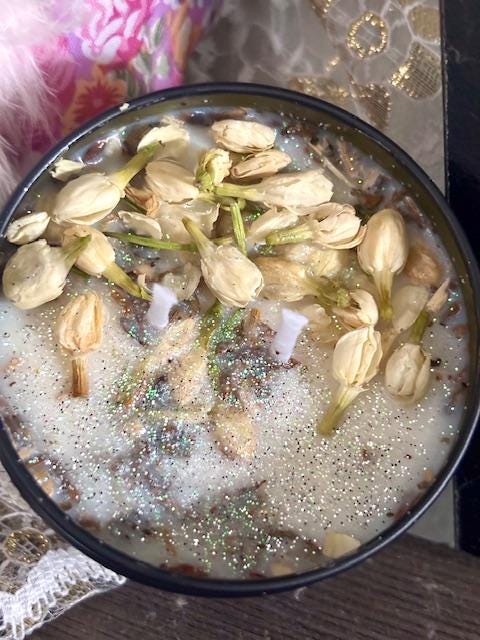 The Angelic Guidance Candle is specifically made with angelic assistance in mind. Made with Jasmine which is known for its intuitive, psychic and spiritual properties. Other herbs included are Mugwort, St. Johns Wort and Lavender. Candle can also be used as a house blessing candle. Align with the vibration of the divine. Light this candle on your altar to align with the divine and your higher self. All candles are blessed and cleansed with prayer and incantations that align with their particular properties. Made with 100% soy wax.
