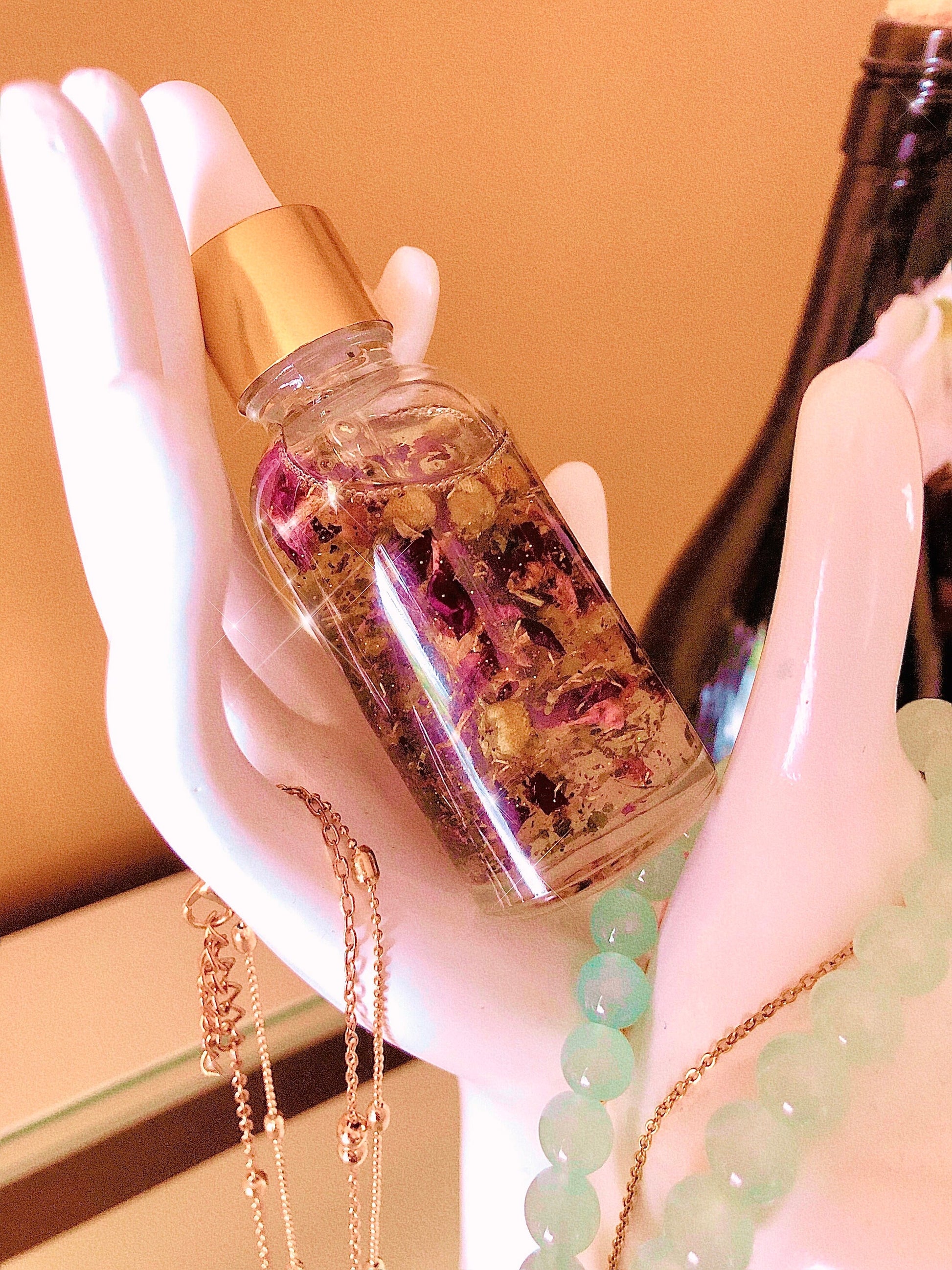*Best Seller* Luxury in a Bottle. A true girls oil. Goddess Beauty Oil in roller bottle to carry with you on the go is a customer favorite, rightfully so. Its properties are to induce confidence, attention, attraction, luxury, opulence and wealth. Made with Egyptian Blue Lotus flowers this oil was specifically crafted with the ultimate divine feminine in mind. It embodies the energy of the divine feminine to attract only good things in ones life. Receive attention and praise when you where this oil. Heads will certainly turn. This oil is a must have for all feminine energies. The scent is AMAZING and lasts. Guaranteed to get complimented on how good you smell. Carry with you on the go and apply before going out in public to receive attention.