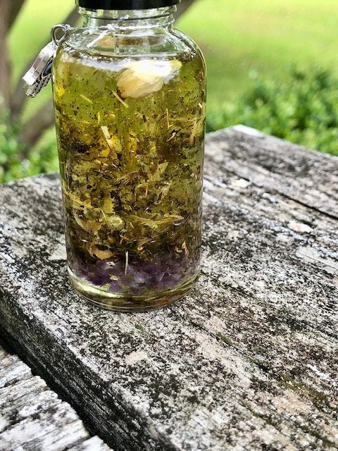 Activate your third eye and increase psychic abilities with the Third Eye Oil. Specifically curated with herbs that enhance third eye strengthening. Third eye oil contains pieces of crushed amethyst crystals and drops of peppermint oil to stimulate third eye. Oil is authentically curated using traditional hoodoo conjure. Instructions included with oil.